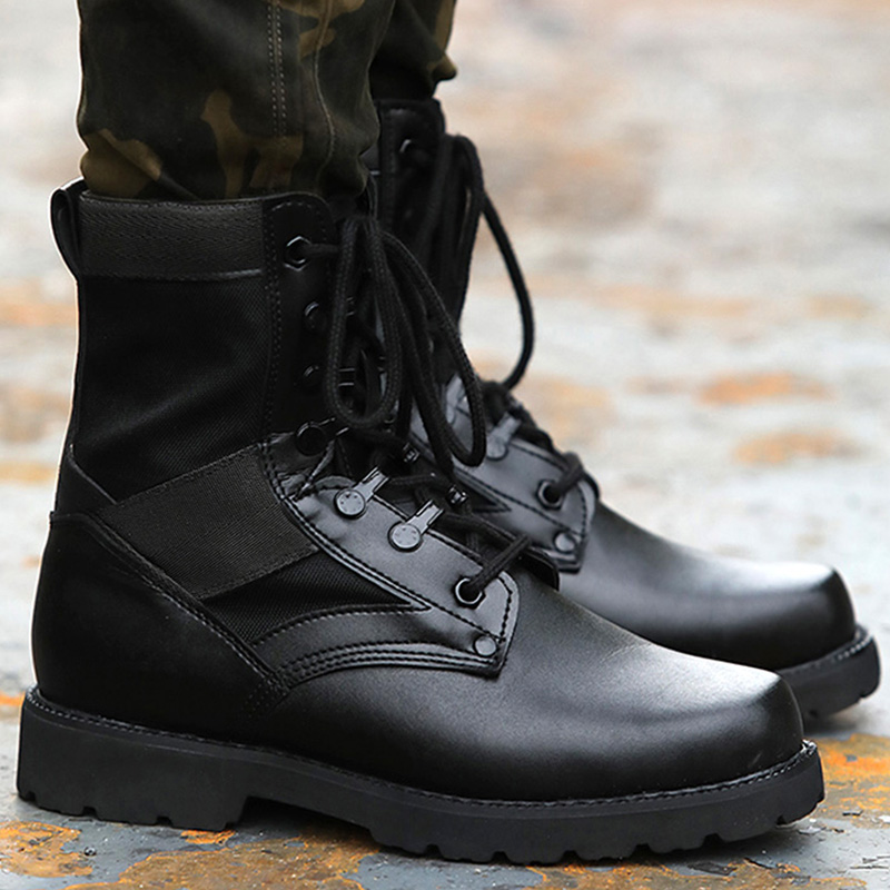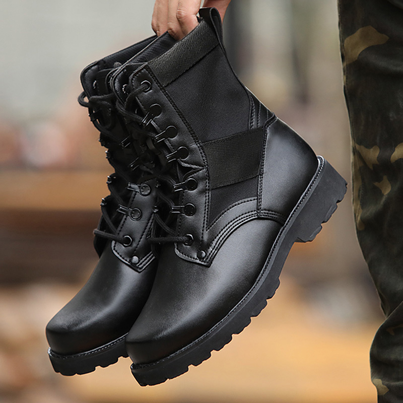 Outdoor Field Mountaineering Shoes Boots Male High Cylinder Genuine Leather Locomotive Boots Wear wear Army fans Tooling Tactical Boots Trend Martin Boots