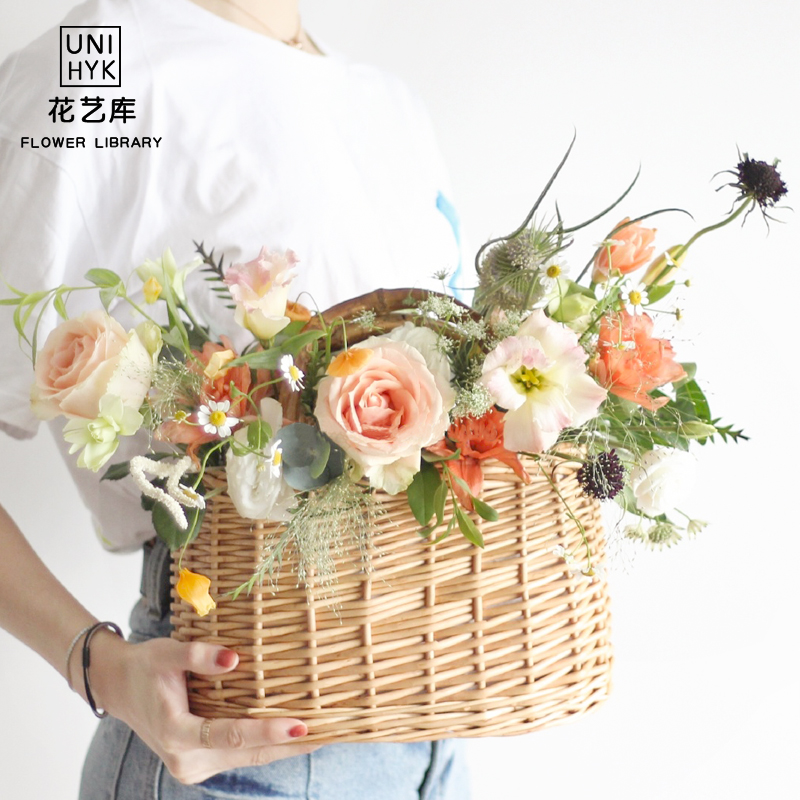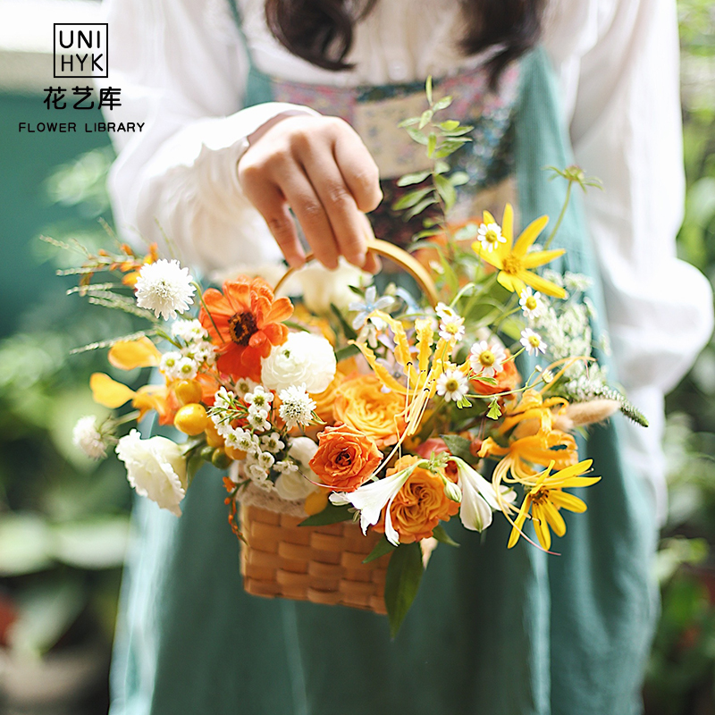 Pumpkin Flower Basket Flower Girl Flower Basket Square Lace Flower Basket Small Fresh Flower Basket Small Romantic Flower Basket Wooden Board Flower Basket Wood Color Wood Art Assembly Flower Basket Pink Wood Art Assembly Flower Basket Black Wood Art Assembly Flower Blue and White Little Fairy Round Mouth