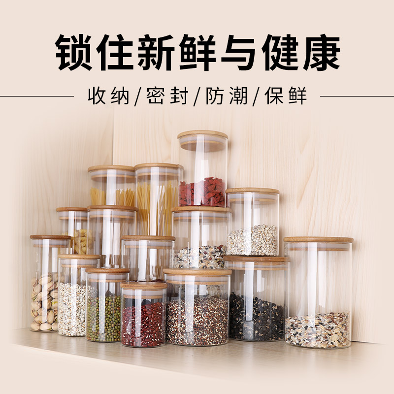 Glass bottle sealed jar with lid tea jar kitchen household grain storage jar storage box food jar