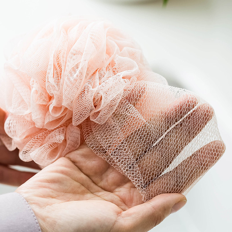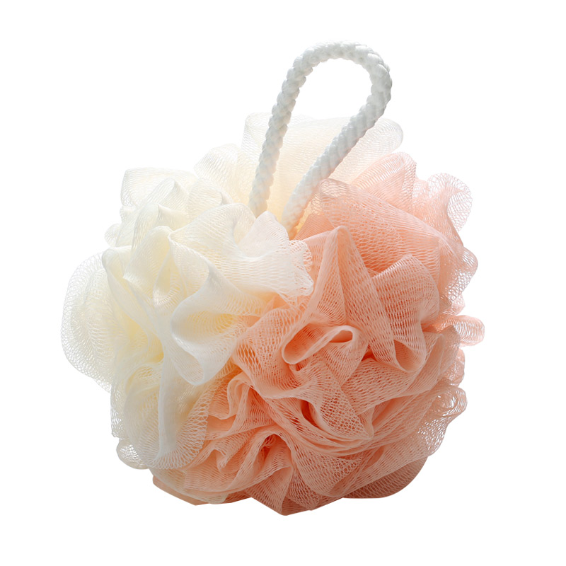 Pink white bath ball + straight handle bath brush white (collection plus buy get 2 sticky hooks)