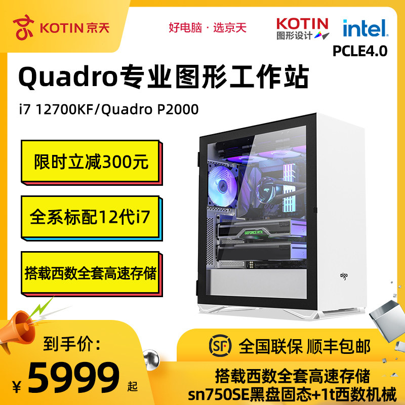 Jingtian Huasheng i7 12700KF T600 T1000 P2000 graphic creative design art design computer mainframe desktop assembly machine complete set of high-quality designer drawings