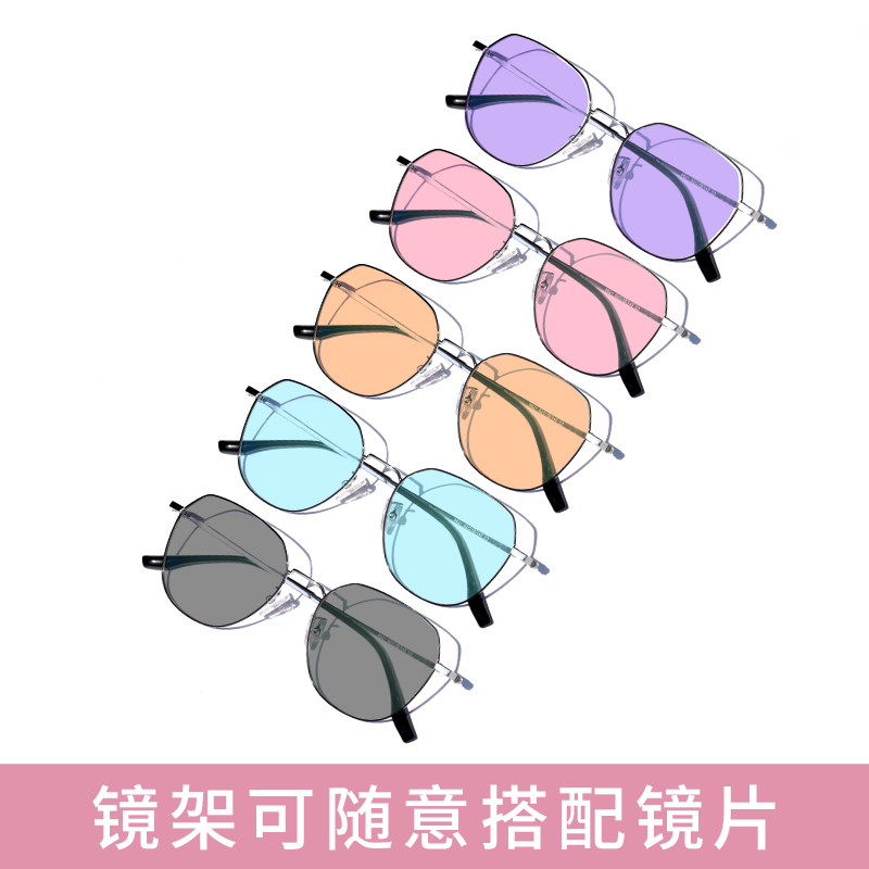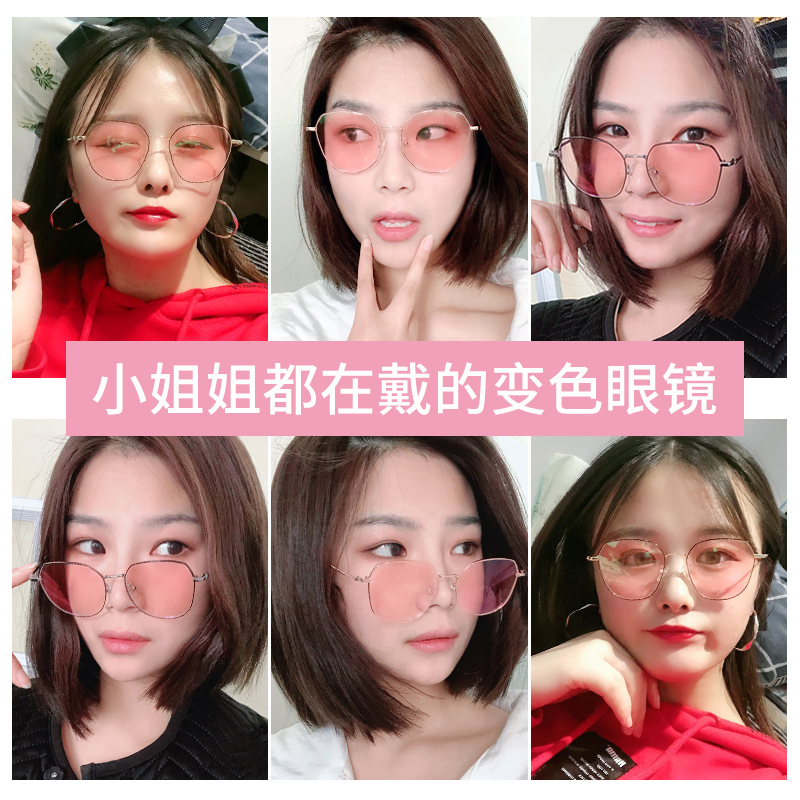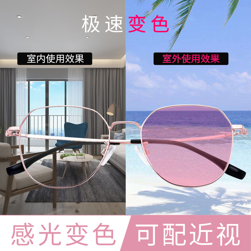 Light Sensitive Discoloration Glasses Han Tide Sunglasses Female Metal Myopia Polygonal Sunglasses Customizable Degrees Danyang Framework