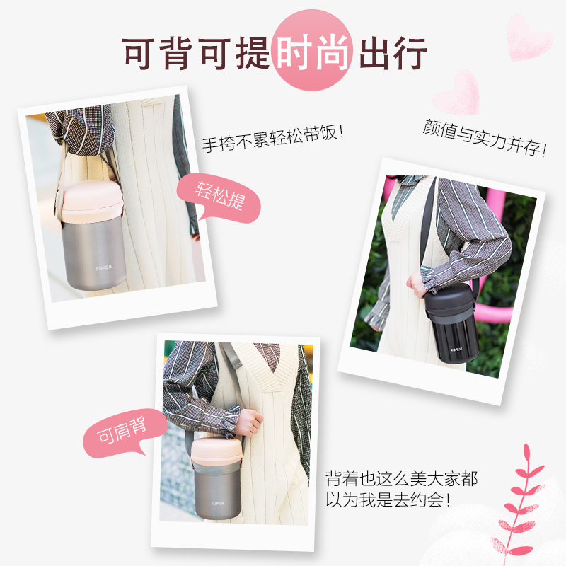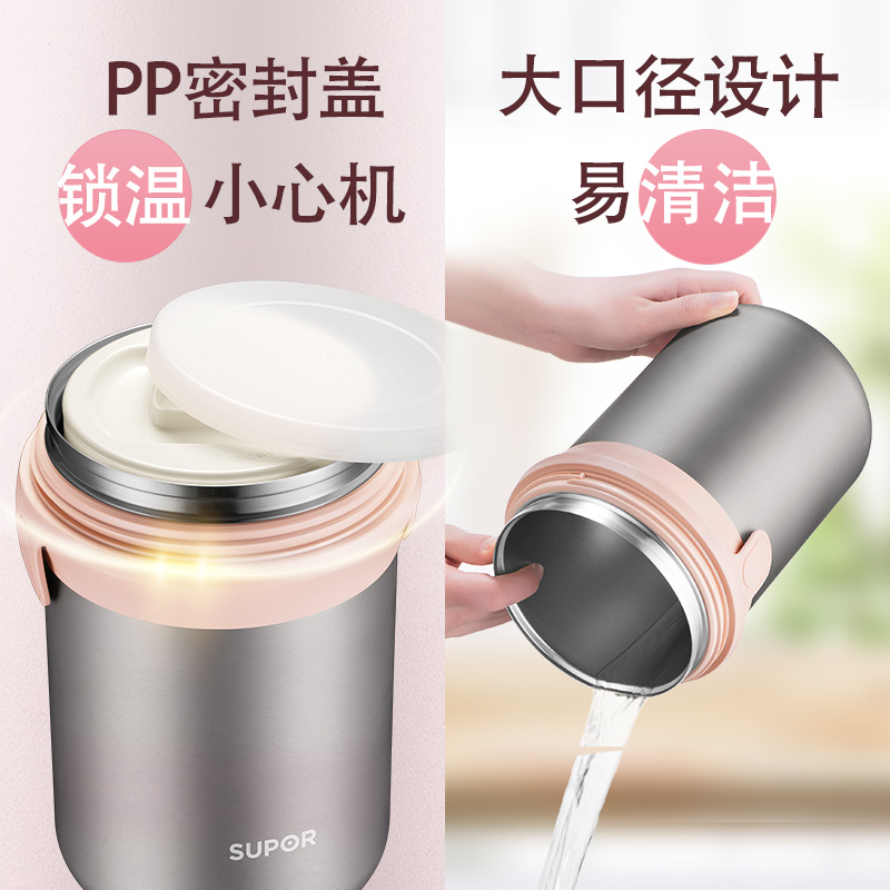 Supoir Insulated Lunch Box Overlong Insulated Barrel Portable 304 Stainless Steel Office Students Lunch Box Separation Type