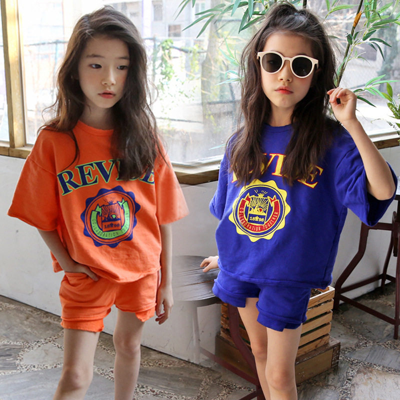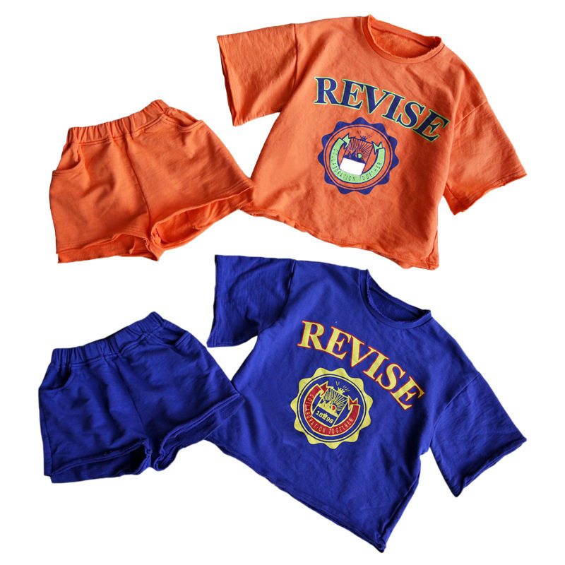 Child Summer Style Casual Suit 2019 New CUHK Boy Girl Girl Child's Baby All-cotton Short Sleeve Shorts Sports Suit