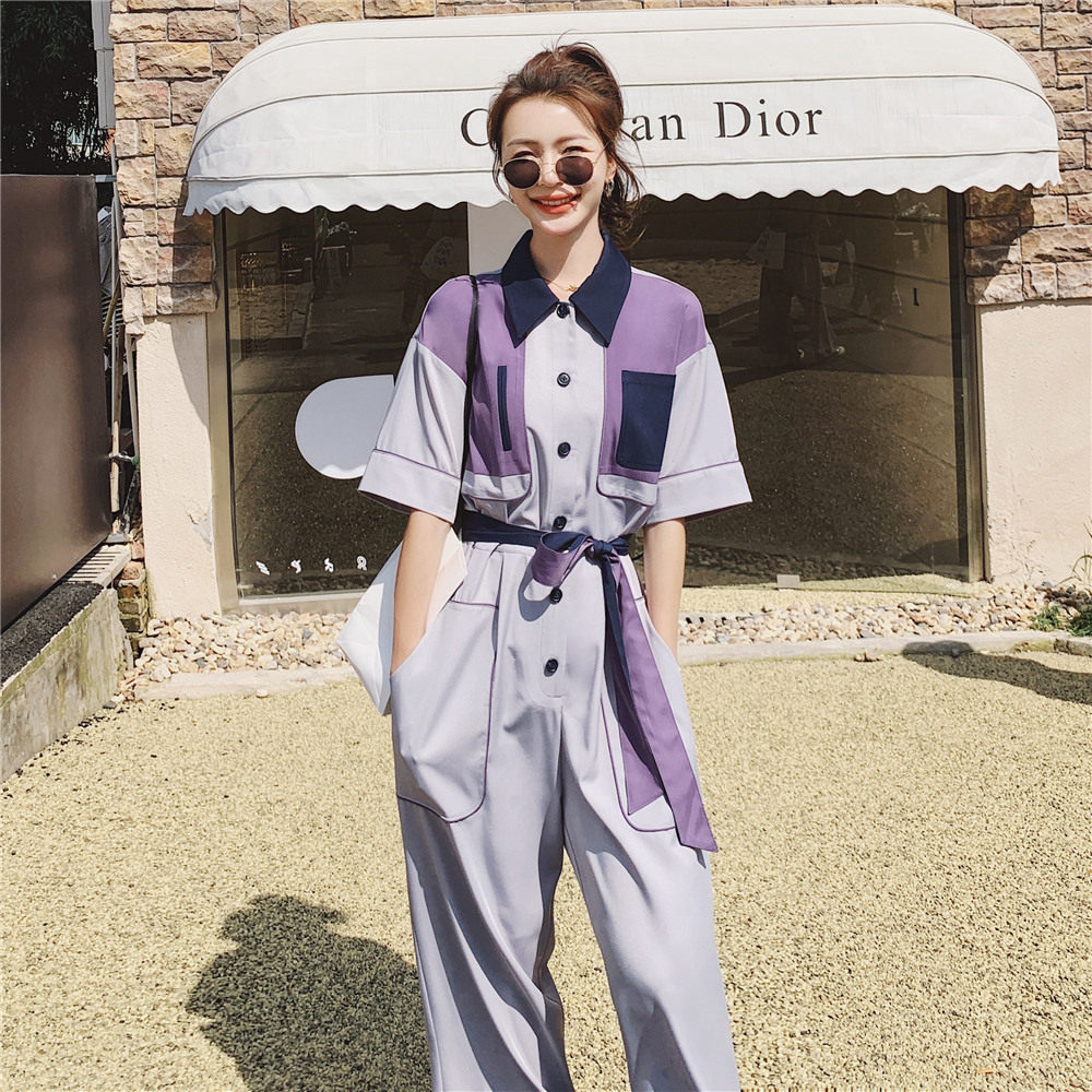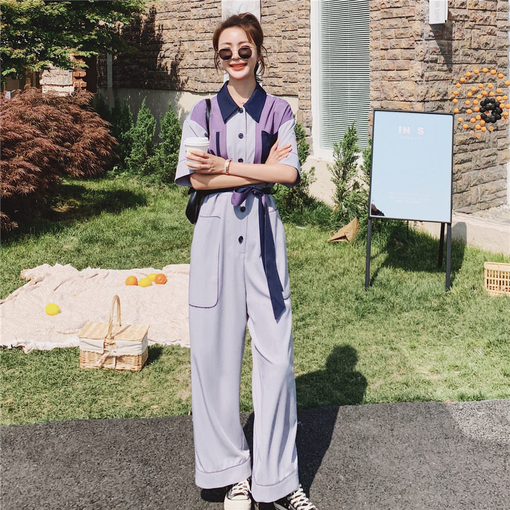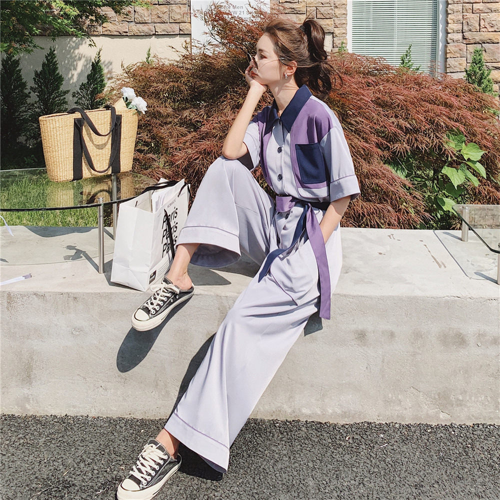 Collision Color Tooling Broadlegged Pants Suit Women's Summer 2022 New Thin Superior Design Sensation the goddess Fan
