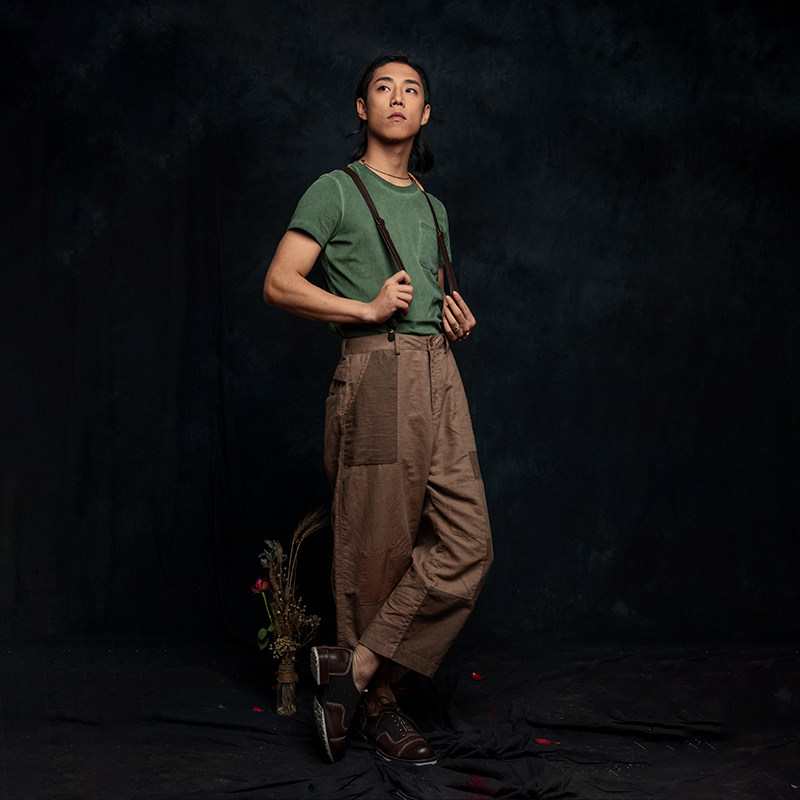 SOARIN Independent Retro American Engineering Pants Men Original Design Splicing Casual 9 Loose Straight Drum Wide Pants