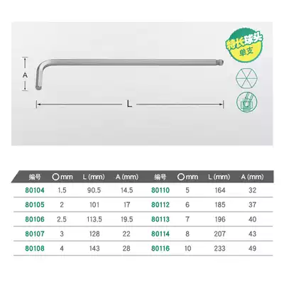 Shida Metric Allen Wrench Single Extra Long Ball Head 80104-80116 Extra Flat Head 80304-80316