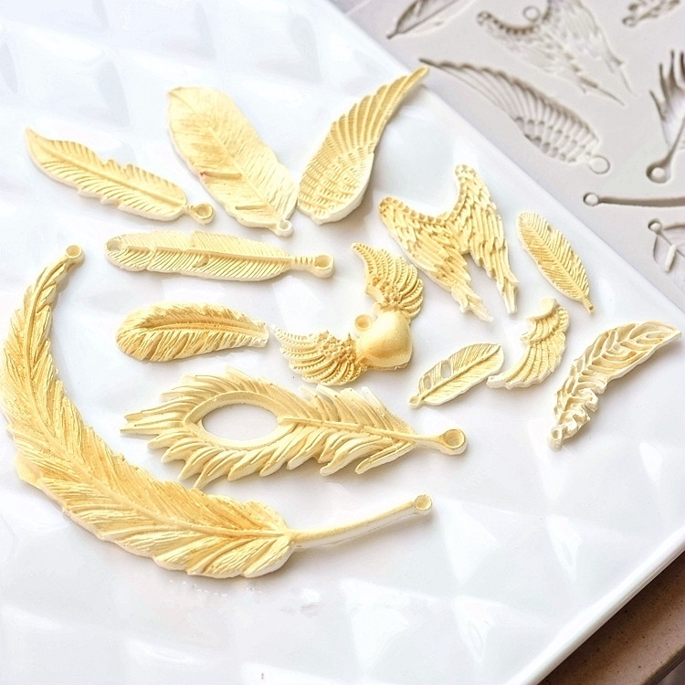 14 14 patterned winged feather silicone mold 1 4 of small number Feather Silicone Mold 1 4 of 4 large number Feather Silicone Mold 1