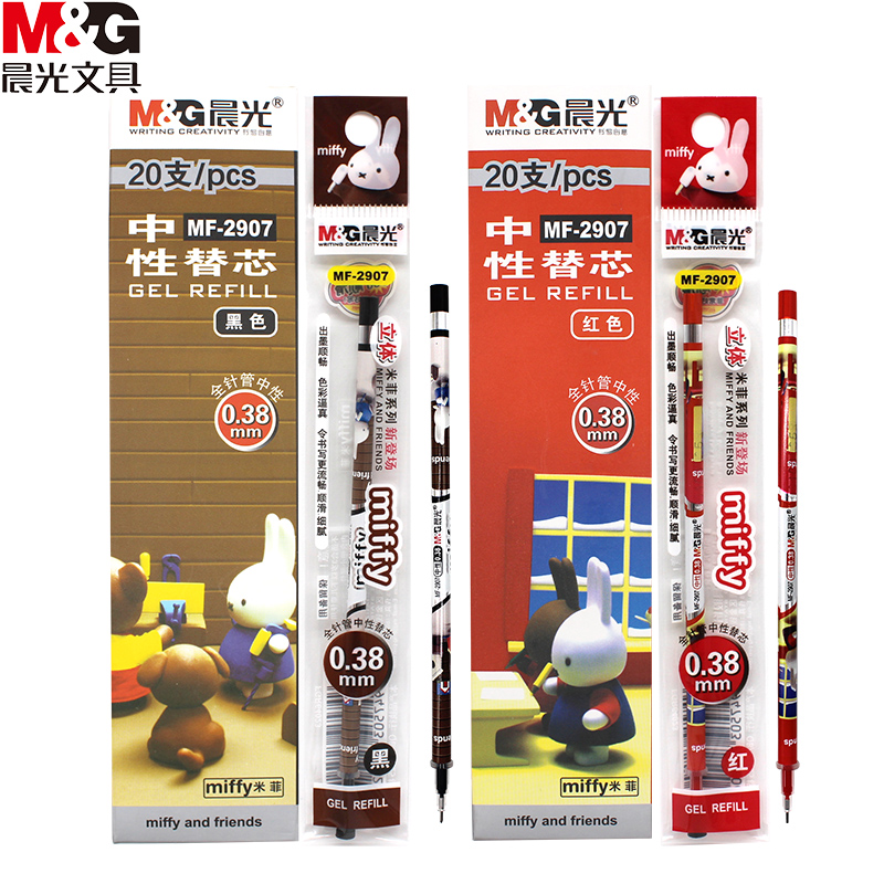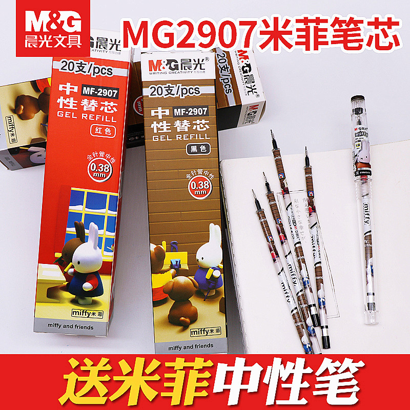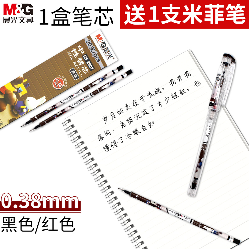 Morning light Mifie neutrality pen core MF-2907 student with 0 38 full needle tube ultra-fine refill black pen refill black red blue refill black refill red refill