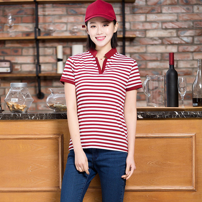 Hotel catering waiter overalls short-sleeved T-shirt women's barbecue fast food milk tea shop summer clothing men's custom printed LOGO