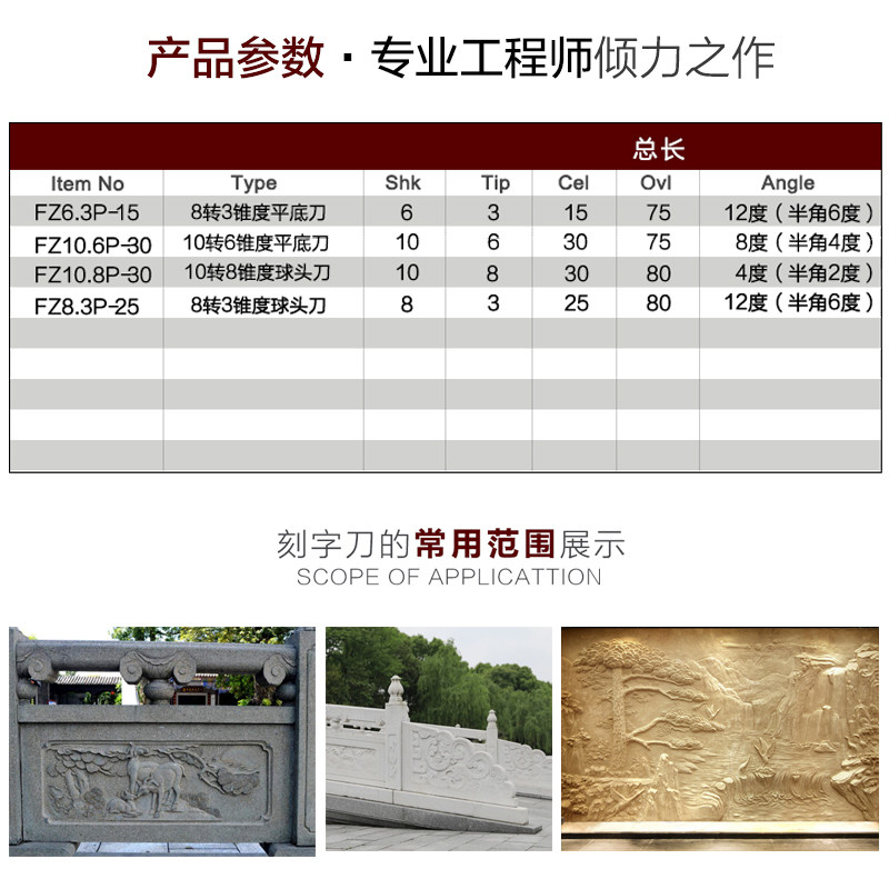 Longxiang Stone Engraving Knife Granite Relief Knife Sintered Taper Ball Head Knife Abrasion Resistant Numerical Control Stone Carving Machine Tool