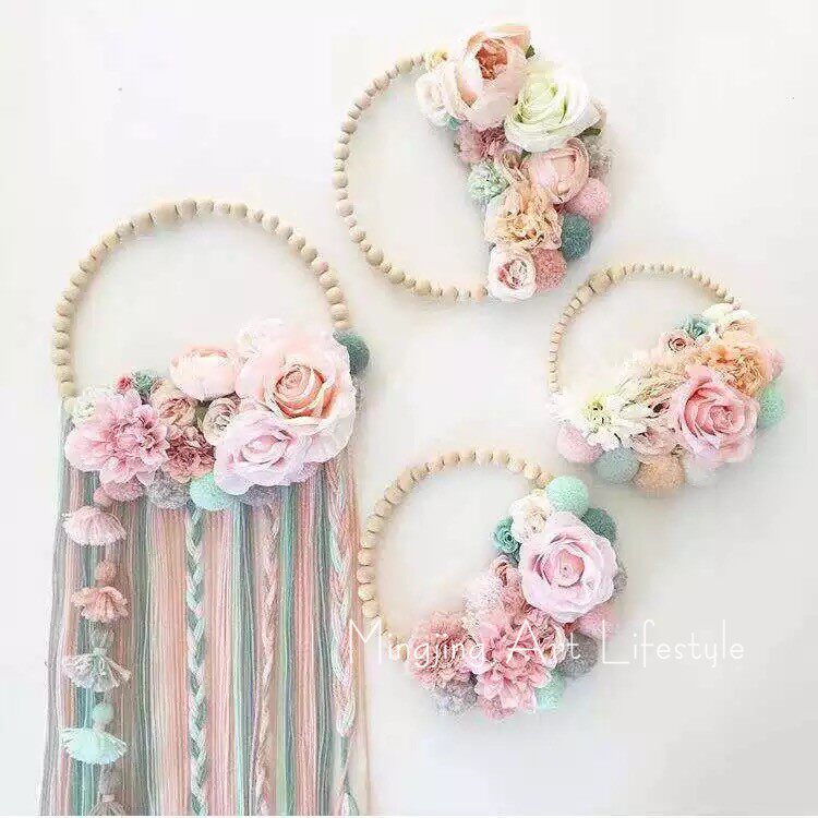 ins Nordic flower ring flow Su dreamnet hanging decoration wall-hanging decoration literary and art house resident hotel ornament wall decoration-Taobao