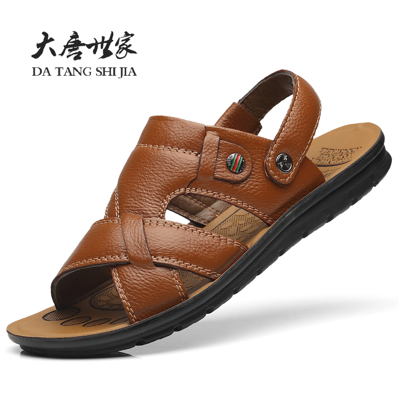 Men's sandals Leather 2022 Summer New Soft Bottom Non-slip Beach Shoes External wear Dual-use Dad Casual Cool Slippers