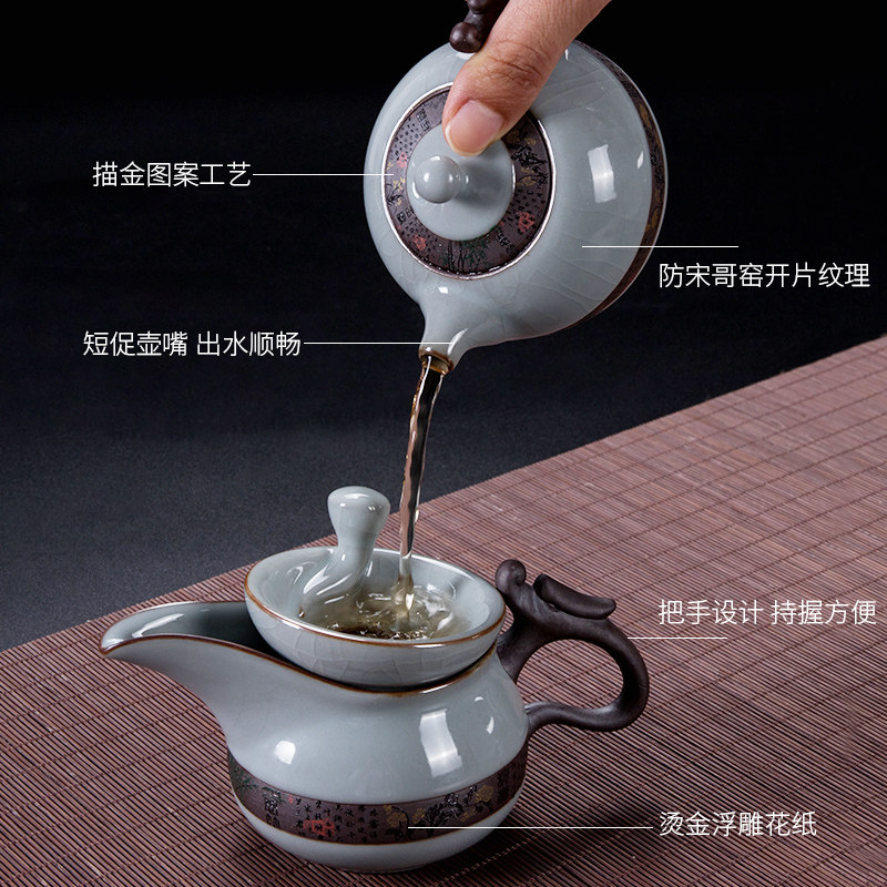 ronkin whole cog kiln tea set group ice splitting glazed open sheet ceramic home minimalist tea maker Kettle Kung Fu Tea Cup