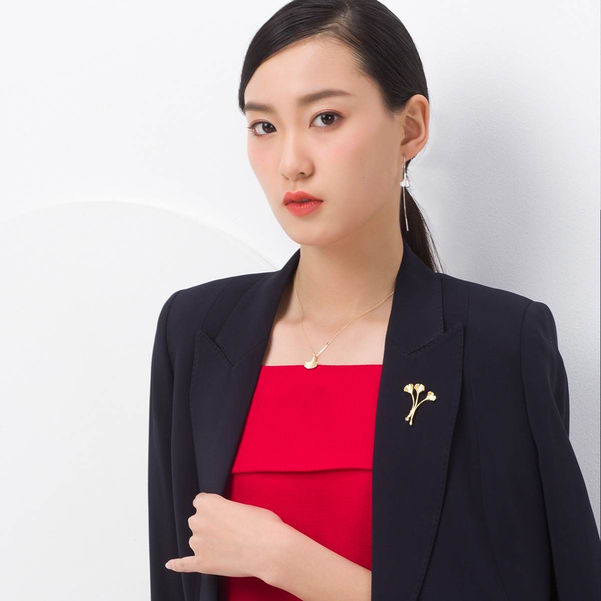 HeyJewel Shu Show gingko series 925 silver gilded trifoliage Gingko Brooch Art Birthday Present Woman