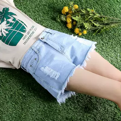 Hole denim shorts Women summer 2021 New High waist loose slim Korean students chic wide leg a hot pants
