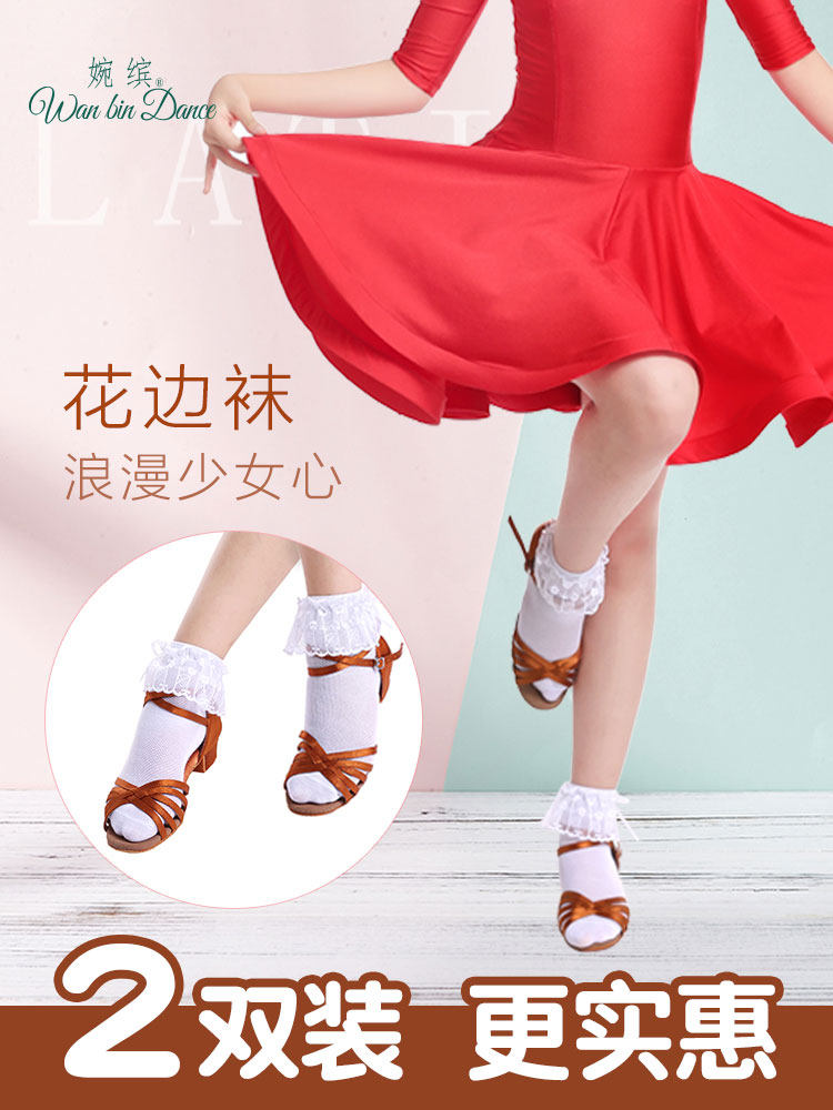 Children's regulation clothing girls dance socks Latin dance socks lace lace socks baby white princess dance socks - Taobao