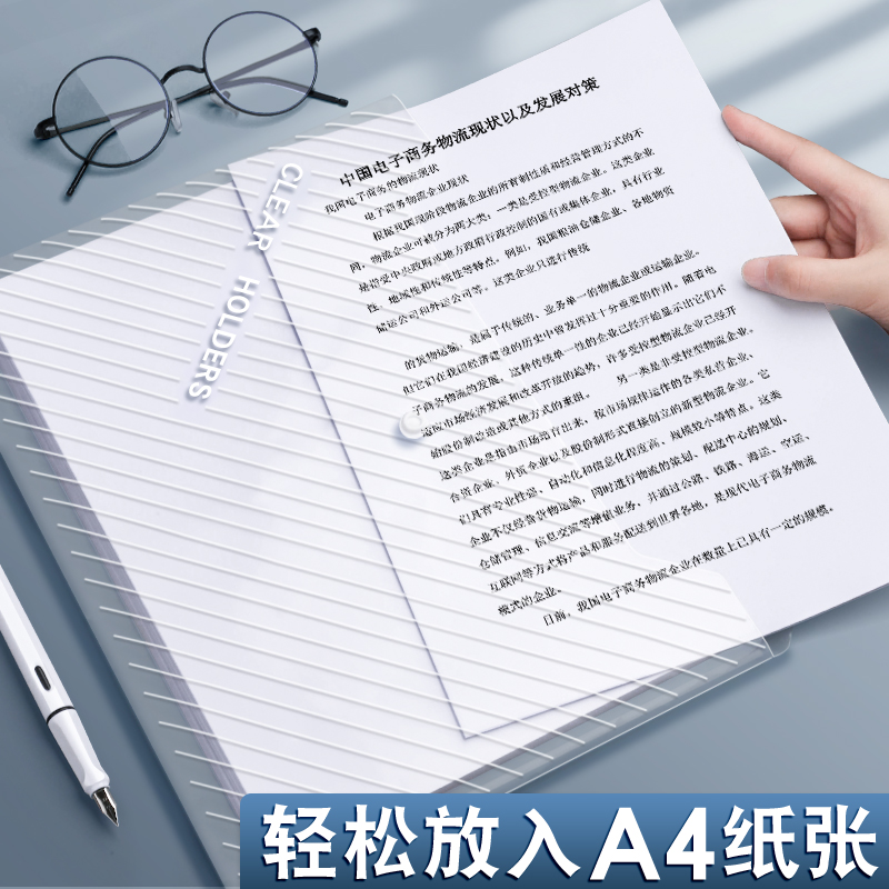File bag Press button transparent plastic a4 thick large capacity student storage bag bag data file examination paper stationery office supplies wholesale folder official document waterproof custom printed LOGO