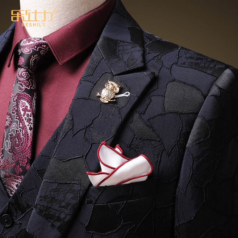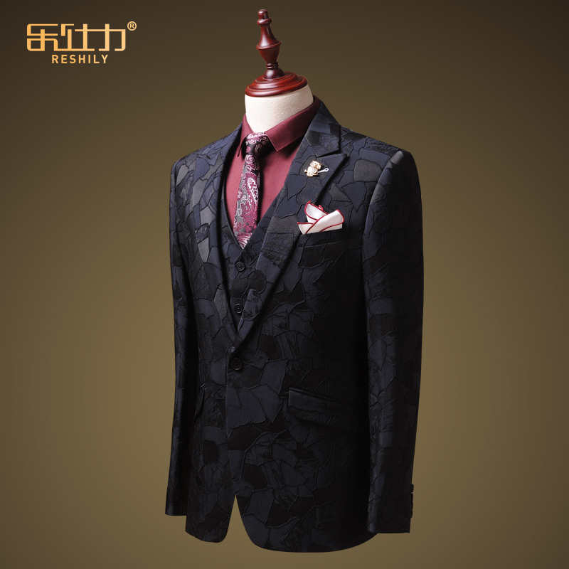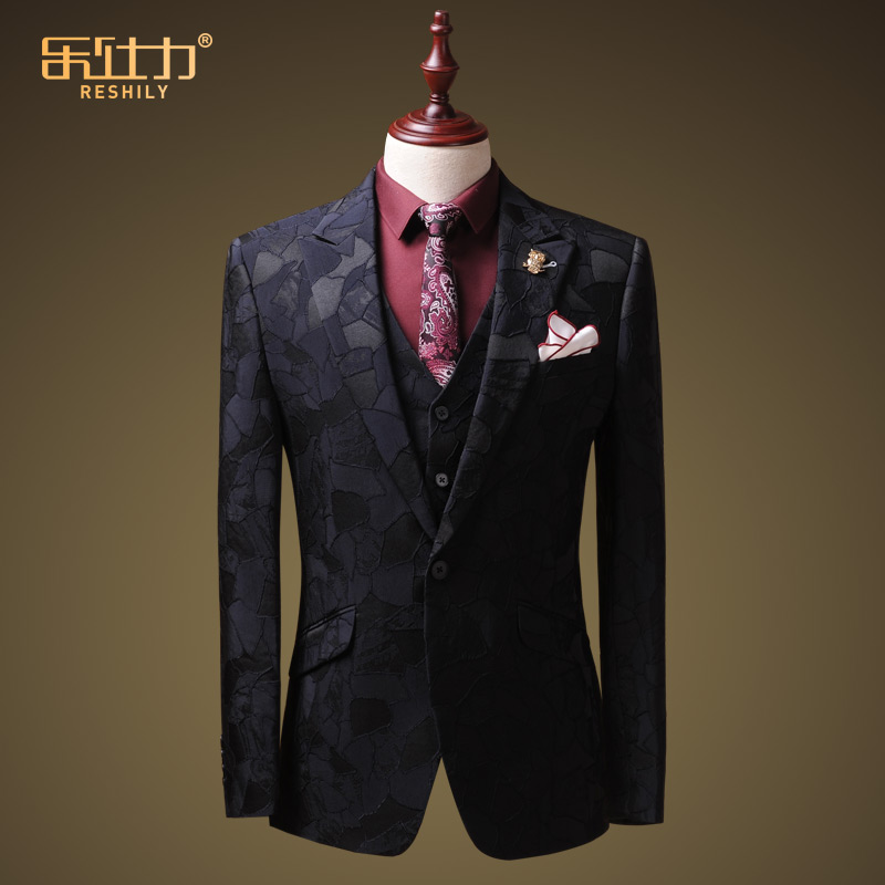 Suite suit men and Korean edition of summer pattern personality trend thin casual suit three packs wedding dress