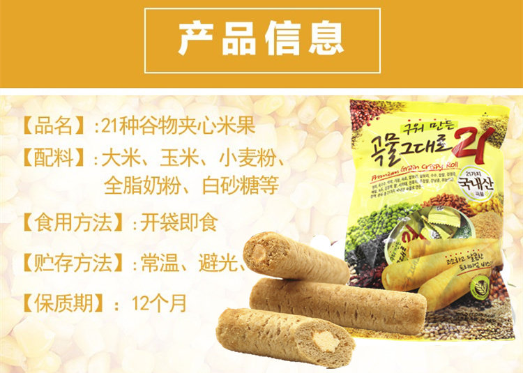 South Korea imported net red wafer 21 kinds of grains sandwiched rice fruit Children's snack snack food 3 packs*180g