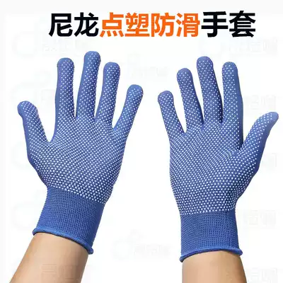 Work gloves thin wear-resistant non-slip oil-proof gloves oil-resistant thin driving men's labor insurance with plastic dispensing non-slip gloves