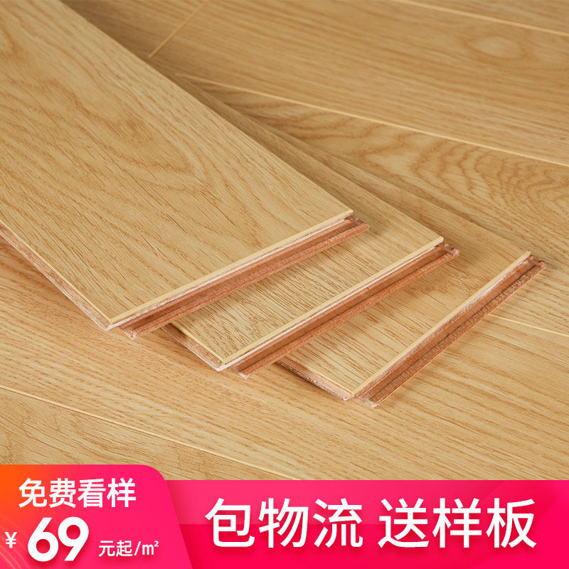Multi-layer solid wood composite wood floor Household wear-resistant waterproof environmental protection three-layer solid wood light gray wood floor factory direct sales