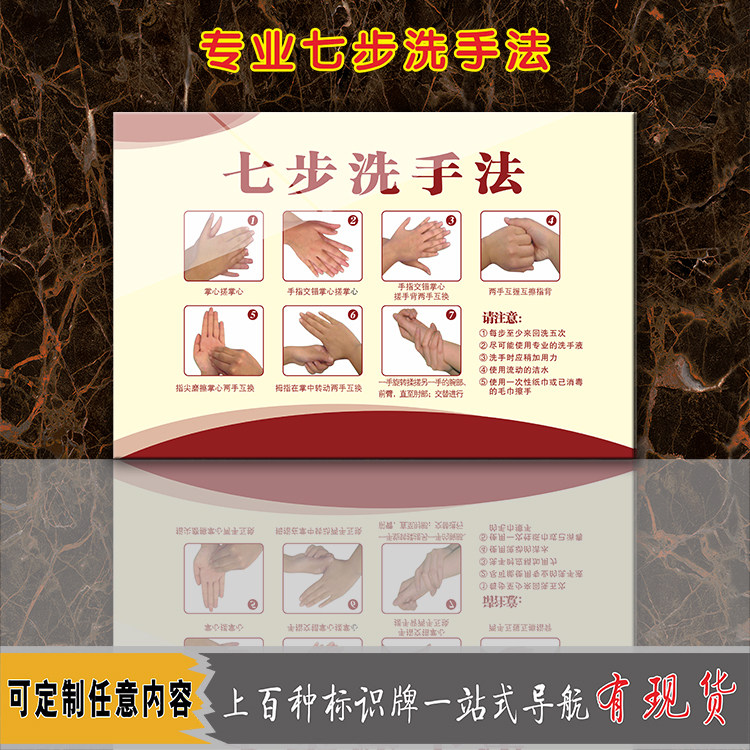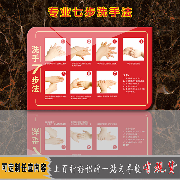 Acrylic Hospital School kindergarten standard hand washing seven 7 steps hand washing method step map wall sticker warm reminder sign