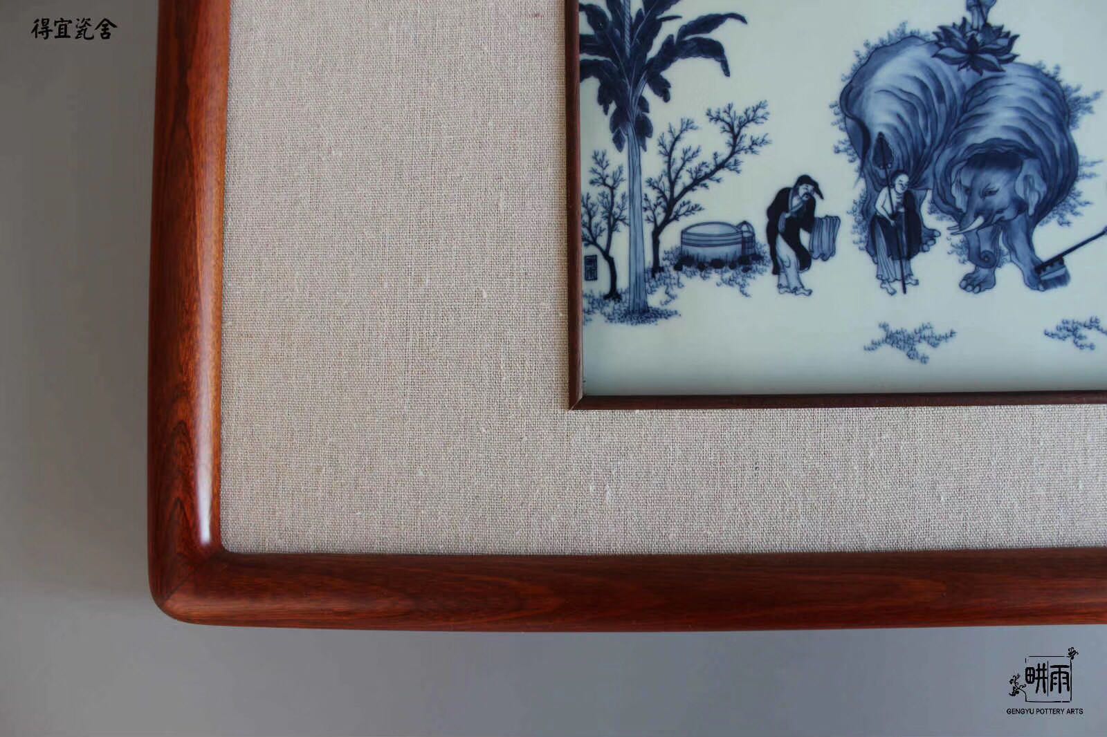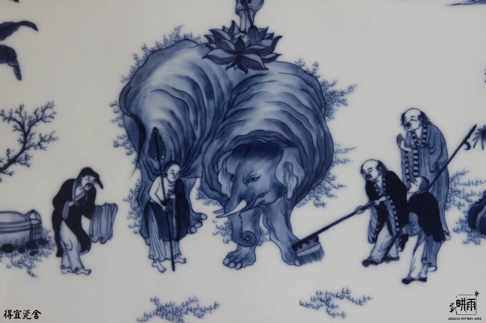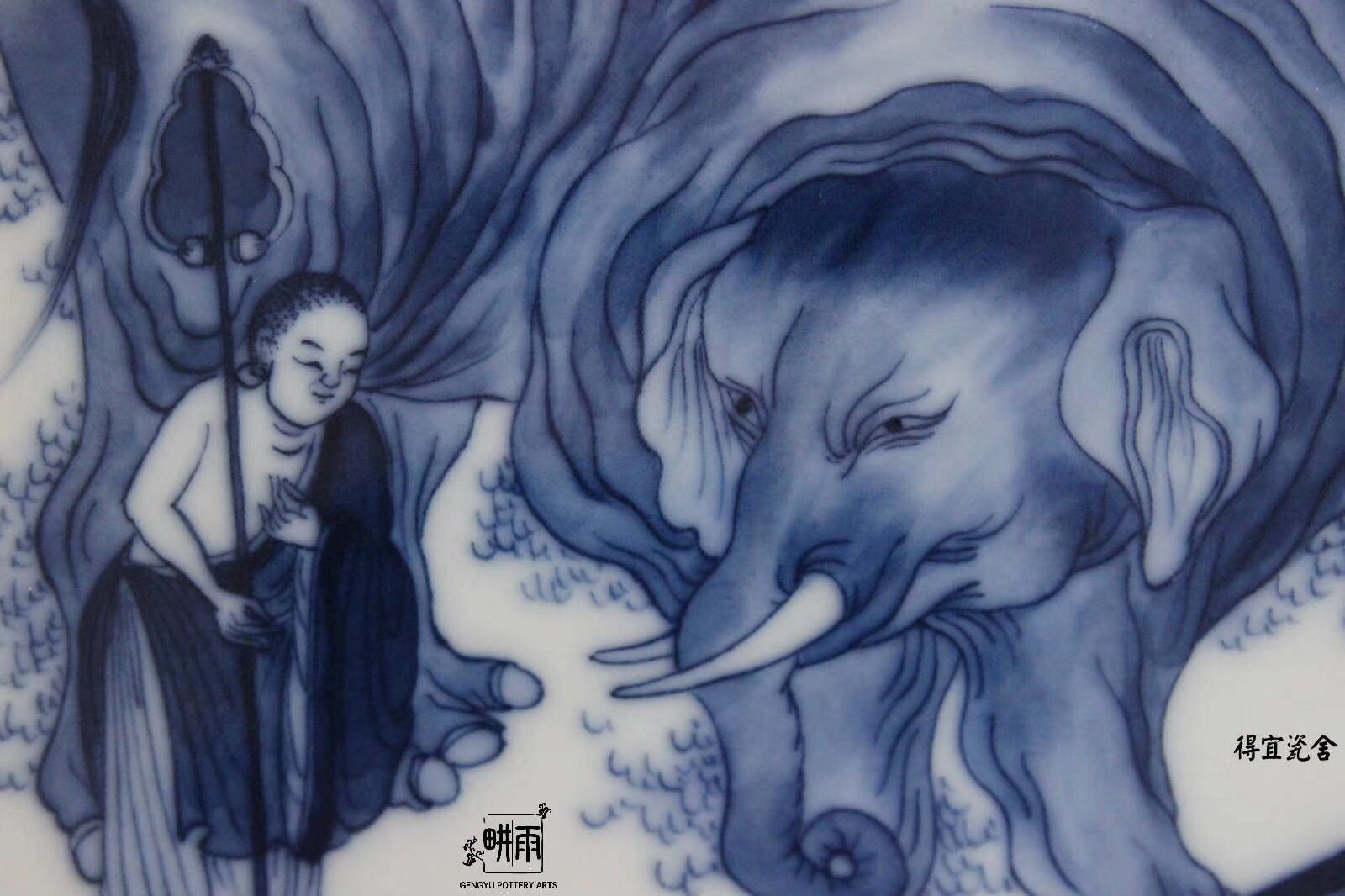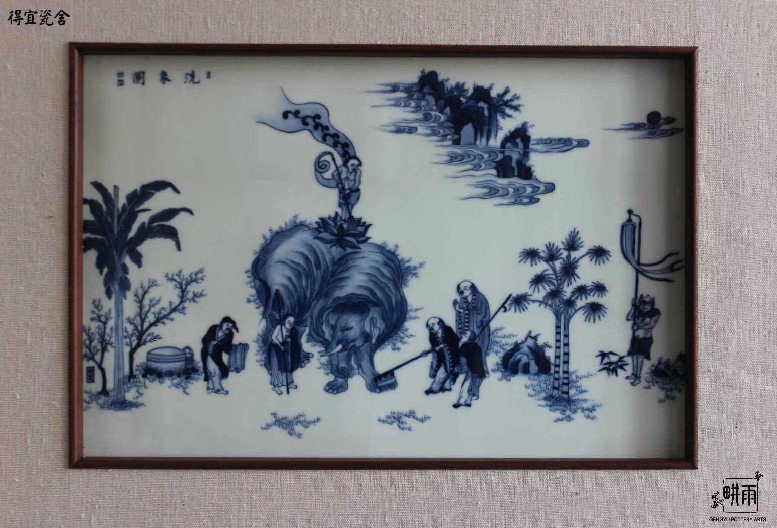 Original design Gengyu wood kiln washing image map antique blue and white Jingdezhen porcelain plate painting hand-painted