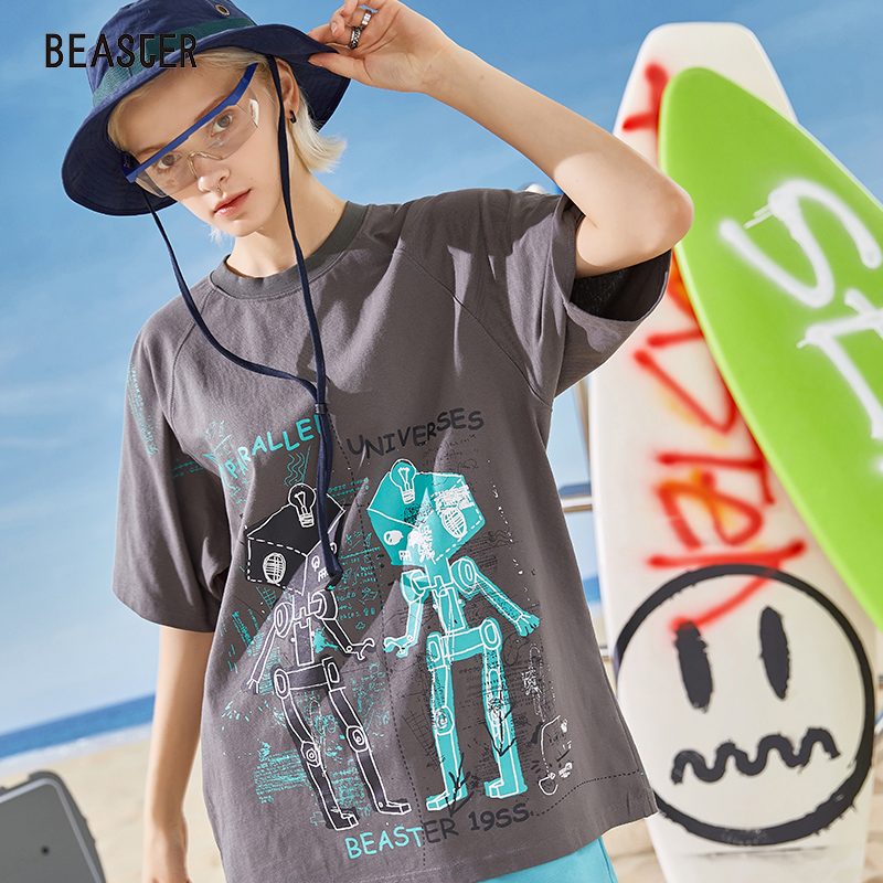 BEASTER lovers fashion brand hip-hop little devil fun hand-painted graffiti short-sleeved men's fashion half-sleeve T-shirt trend