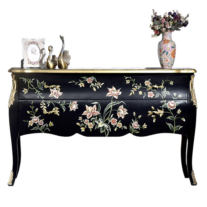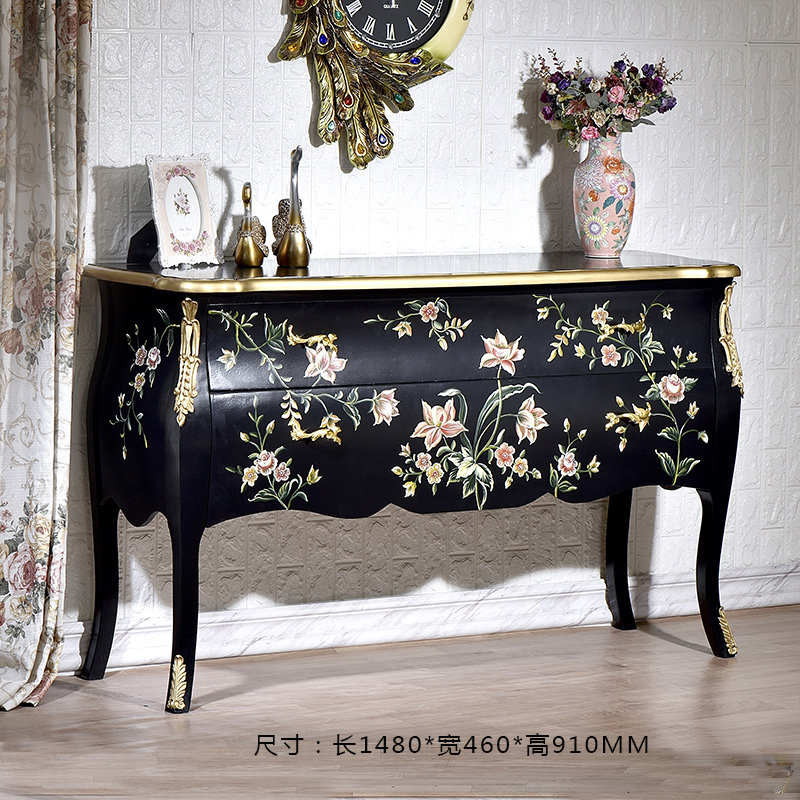 American porch cabinet classical foyer two drawers black painted storage cabinet wall side cabinet decorative cabinet European storage cabinet
