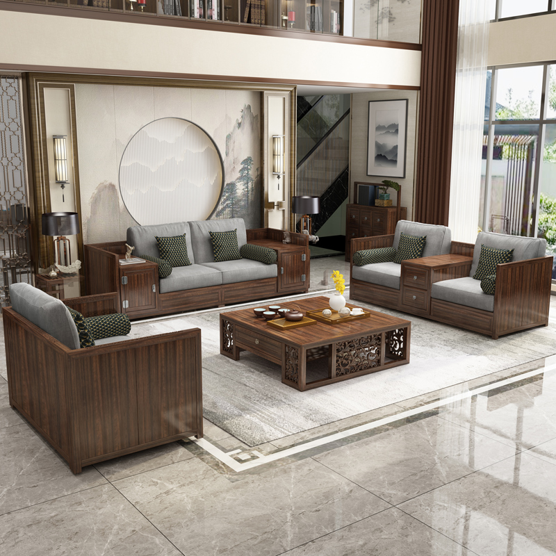 New Chinese solid wood sofa living room villa combination ebony Zen light luxury storage modern minimalist full set of furniture