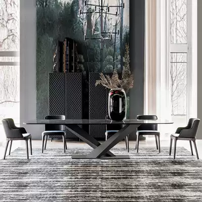 Nordic marble dining table Modern villa large ping number model room Light luxury simple dining table and chair combination Rectangular