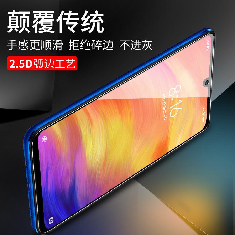 Red rice note7 toughened film pro fullscreen covering redmi7 full-pack edge noto7pro original dress por without white edge 7p anti-blue millet not7pro anti-fall mo