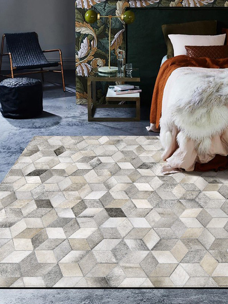 26 Hand - made fur fur puzzle carpet geometry French luxury designer diamond - shaped 3D gray template room
