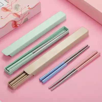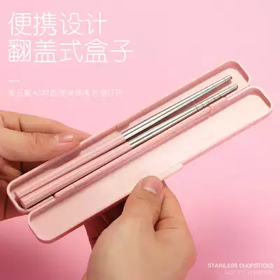 Chopsticks box portable take-out travel tableware student Japanese style 304 stainless steel lunch chopsticks storage box 1 Double Pack