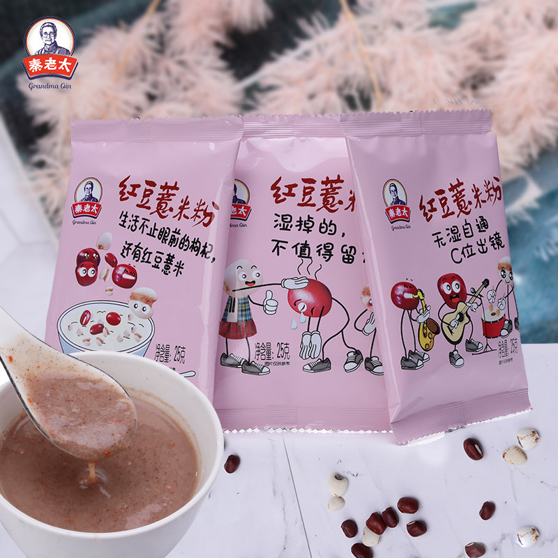 Qin old lady red bean barley powder to barley red bean breakfast meal replacement full moisture bagged 25g bag