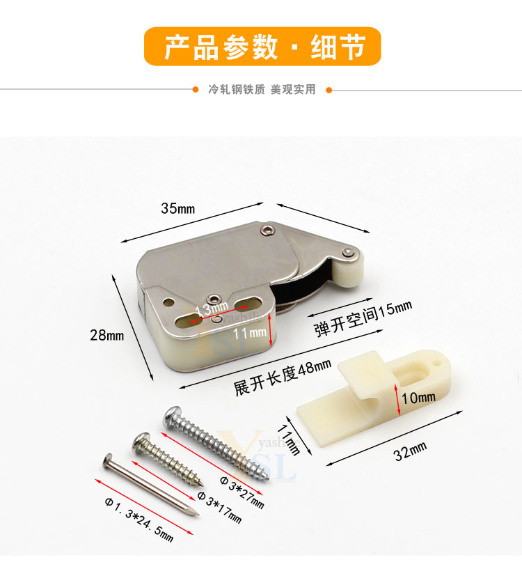 Cabinet door bouncer push-type handle-free self-bouncer touch bead elephant trunk lock cabinet hand-press pop-up door buckle-type magnetic touch
