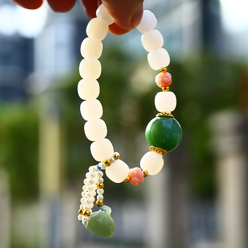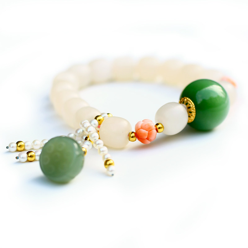 (Xiong's family) Natural Hetian jade mutton fat jade lotus root starch old-fashioned bracelet round bracelet bracelet pendant certificate