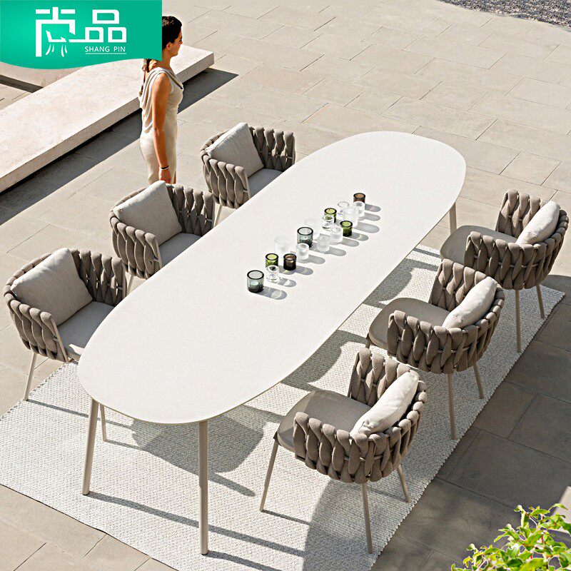 Outdoor table and chair rattan dining chair designer courtyard garden furniture living room balcony open-air leisure small dining table combination
