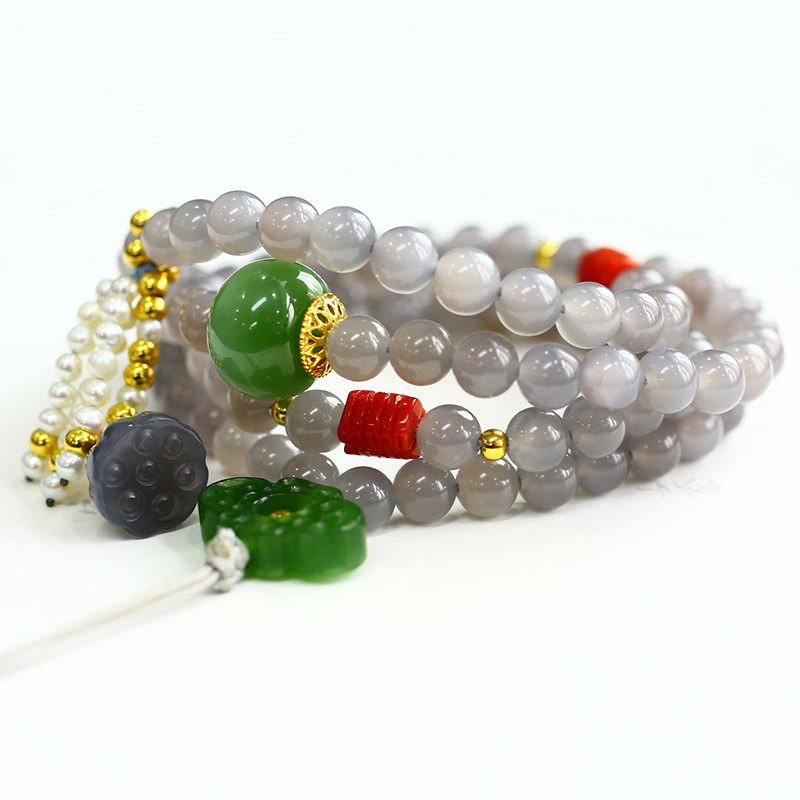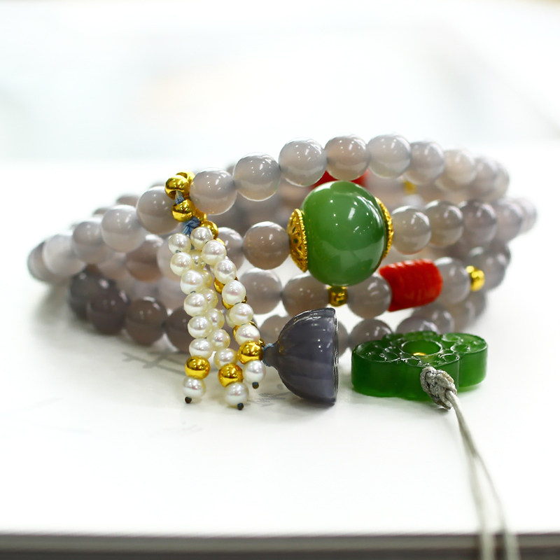 Xiongjia Jewelry Natural Hetian Jade Jade Bracelet Mutton Fat White Jade Necklace Smoke Purple Old Type 108 Buddha Beads Original
