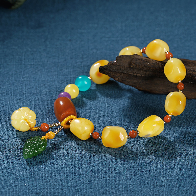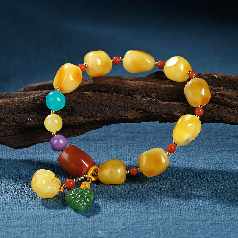 Ozeni Chanterelle yellow beeswax single circle hand string female natural Amber Russian Baltic Secret wax multi-treasure bracelet