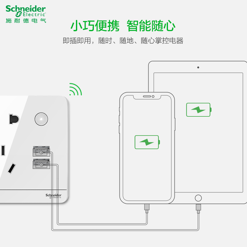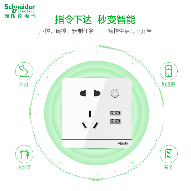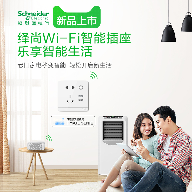 Schneider wifi smart socket Tmall elf switch remote voice control open five-hole dual USB socket