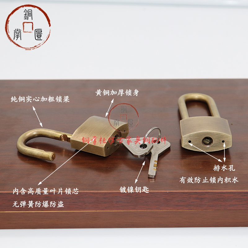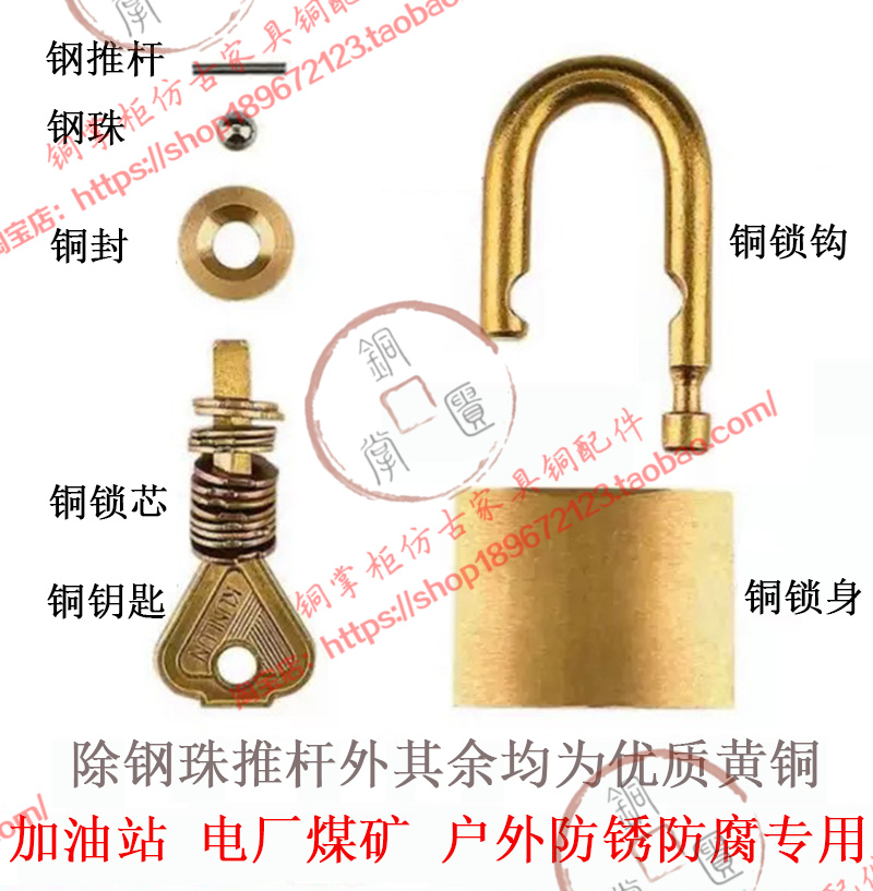 Copper lock pure copper old-fashioned door bolt padlock door lock waterproof anti-rust explosion-proof full copper lock retro long beam lock gas station lock