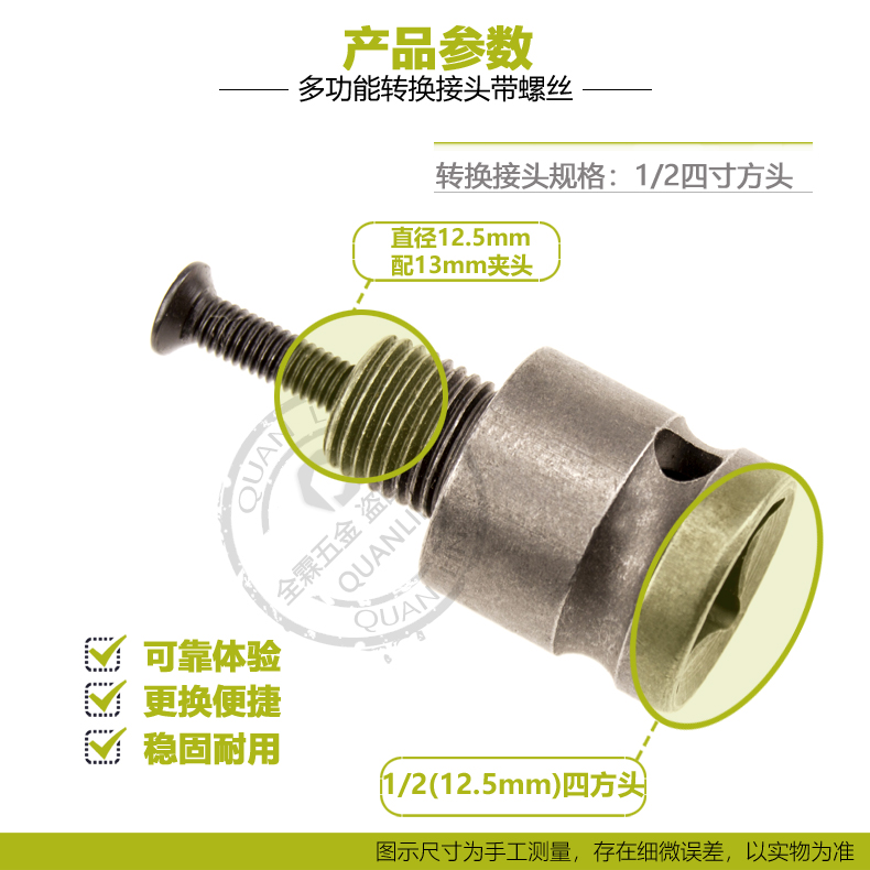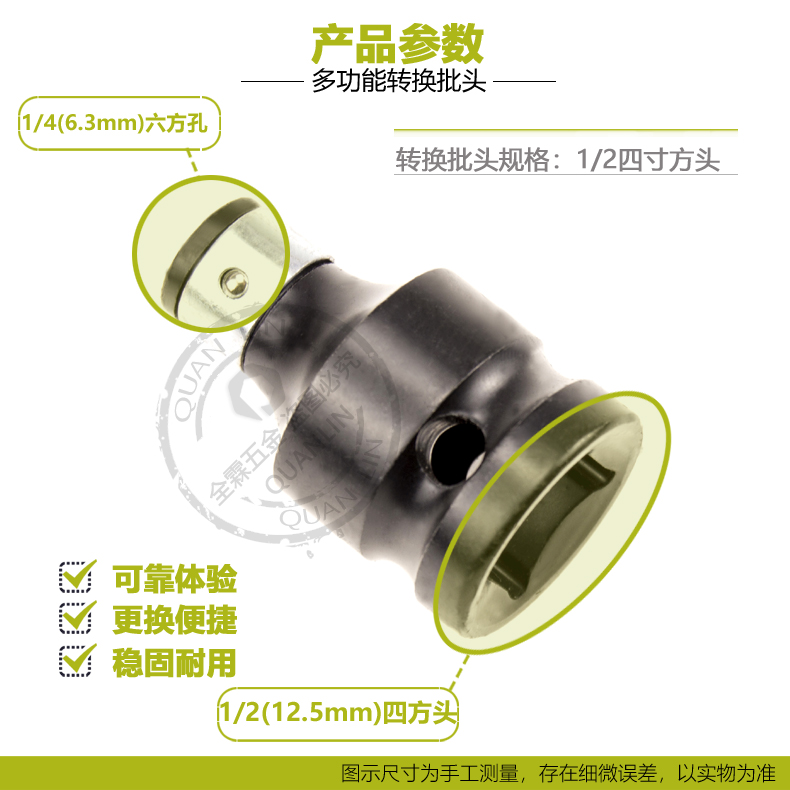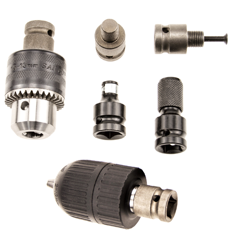 A 3 8 conversion joint, a 1 2 conversion joint, a 1 2 screw conversion joint, an in-line batch head joint, a telescoping spring sleeve joint, a 13mm self-locking chuck conversion joint