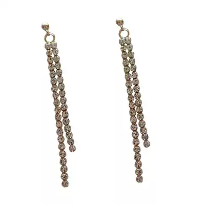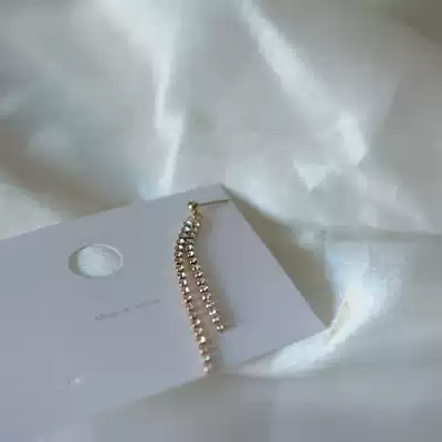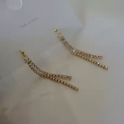 chao flash row diamond United States 14k gold double chain full diamond zircon tassel earrings long version earrings show face thin