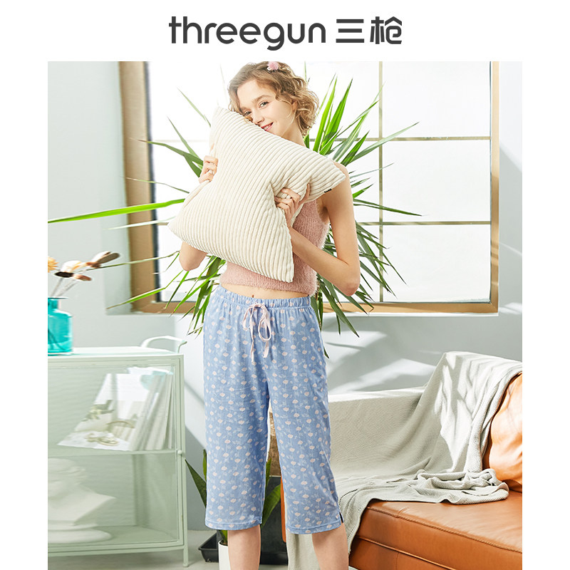 Triple Gun Sleeping Pants Home Pants Woman Summer Pure Cotton Schumer Cotton Woman 50% Pants Printed Flex Elastic Cotton Home Long Pants