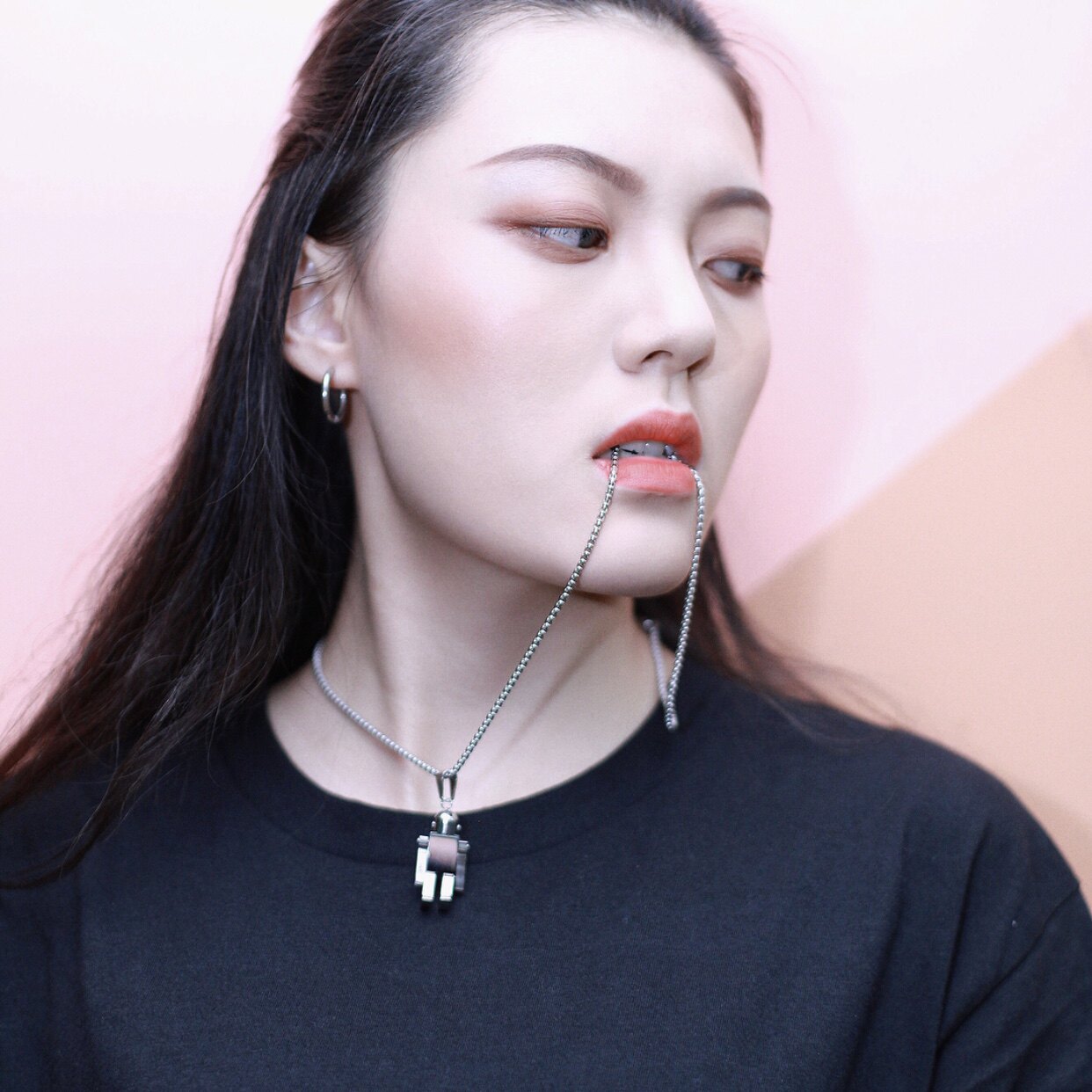 Super cool swingable hiphop hip-hop robot pendant personality street dancer men and women couple titanium steel necklace