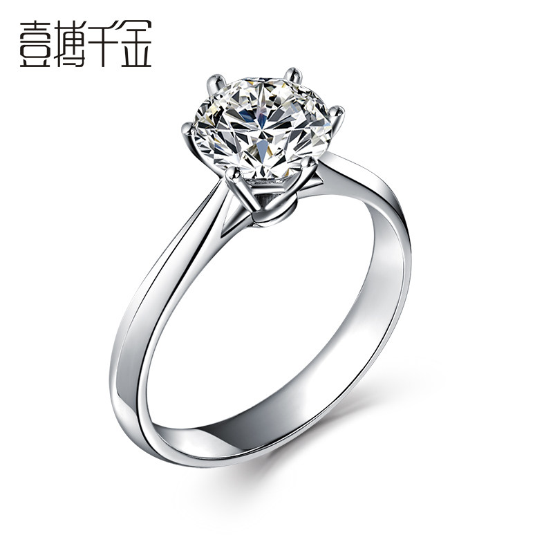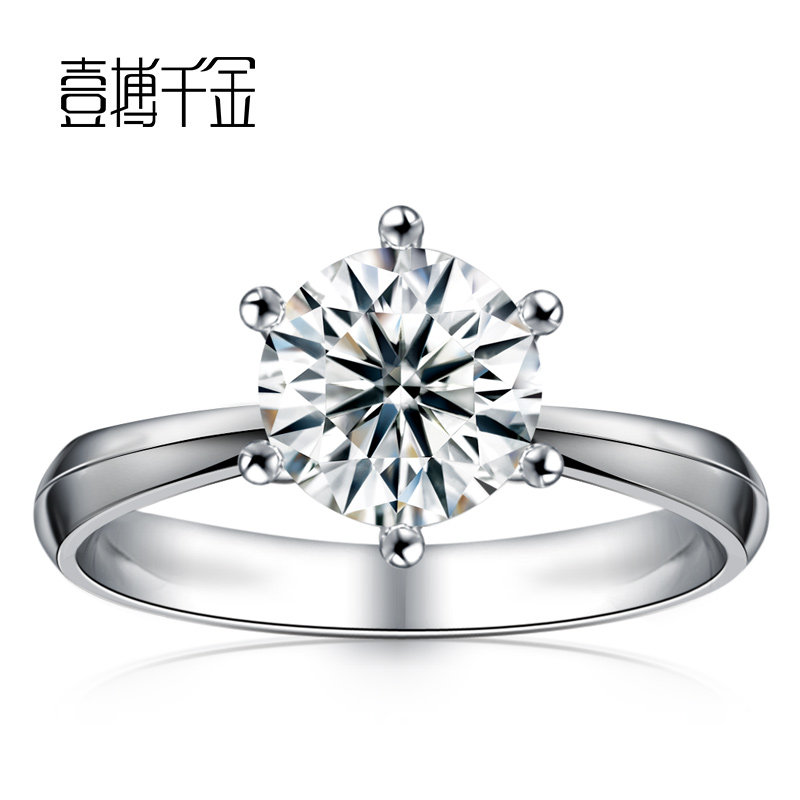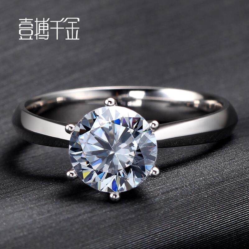 Platinum Diamond Ring 18K Gold Wedding Single Drill Diamond Ring Female GIA Nude Drill A carat six-claw diamond ring true drill