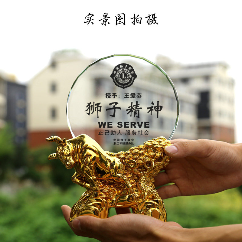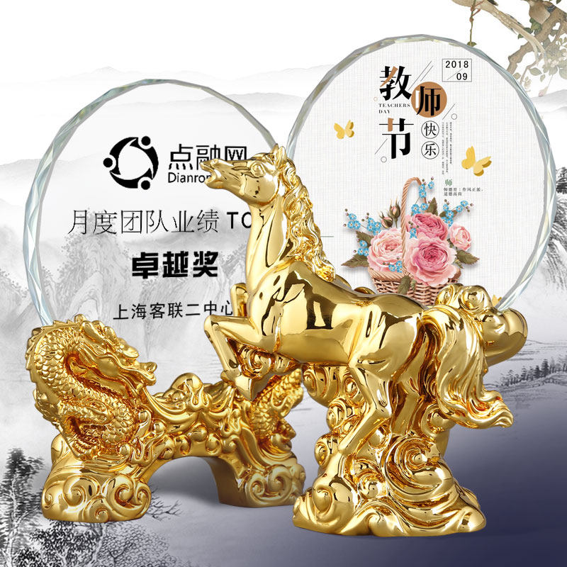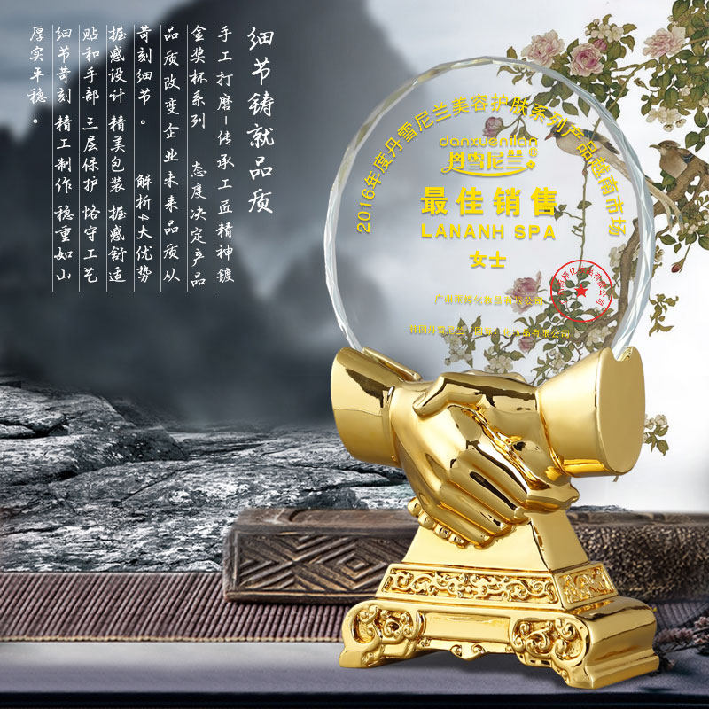 2019 Crystal Trophy Creativity Customised Metal Resin Handshake Dragon Bull Racing Medal Company Employee Trophy Lettering