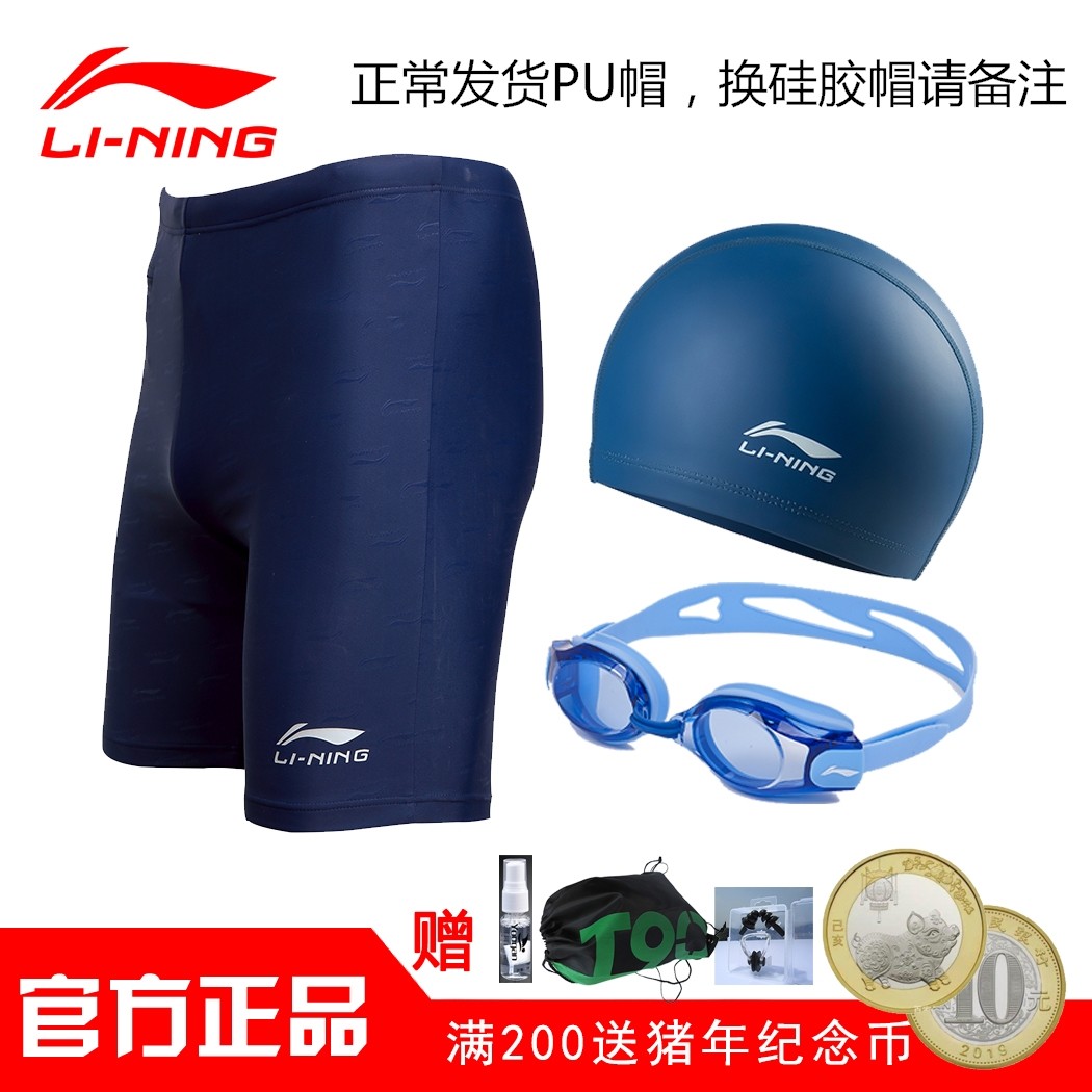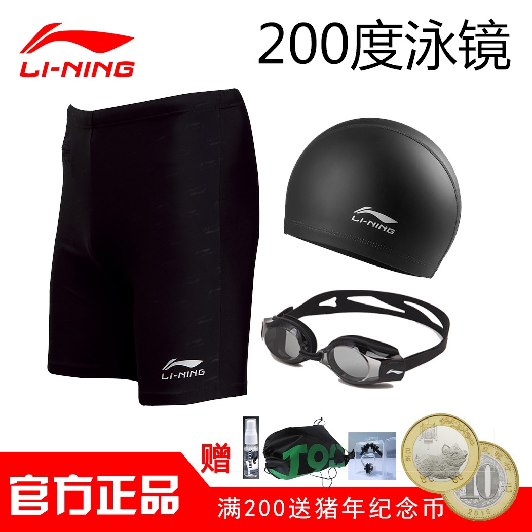 Li Ning men's swimsuit equipment three-piece suit professional five-point swimming trunks myopia degree swimming goggles swimming cap swimsuit